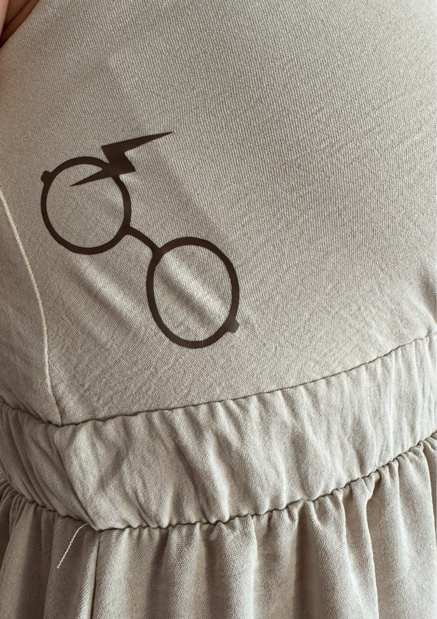 Op de borst prijkt een iconische bril, subtiel maar veelzeggend.