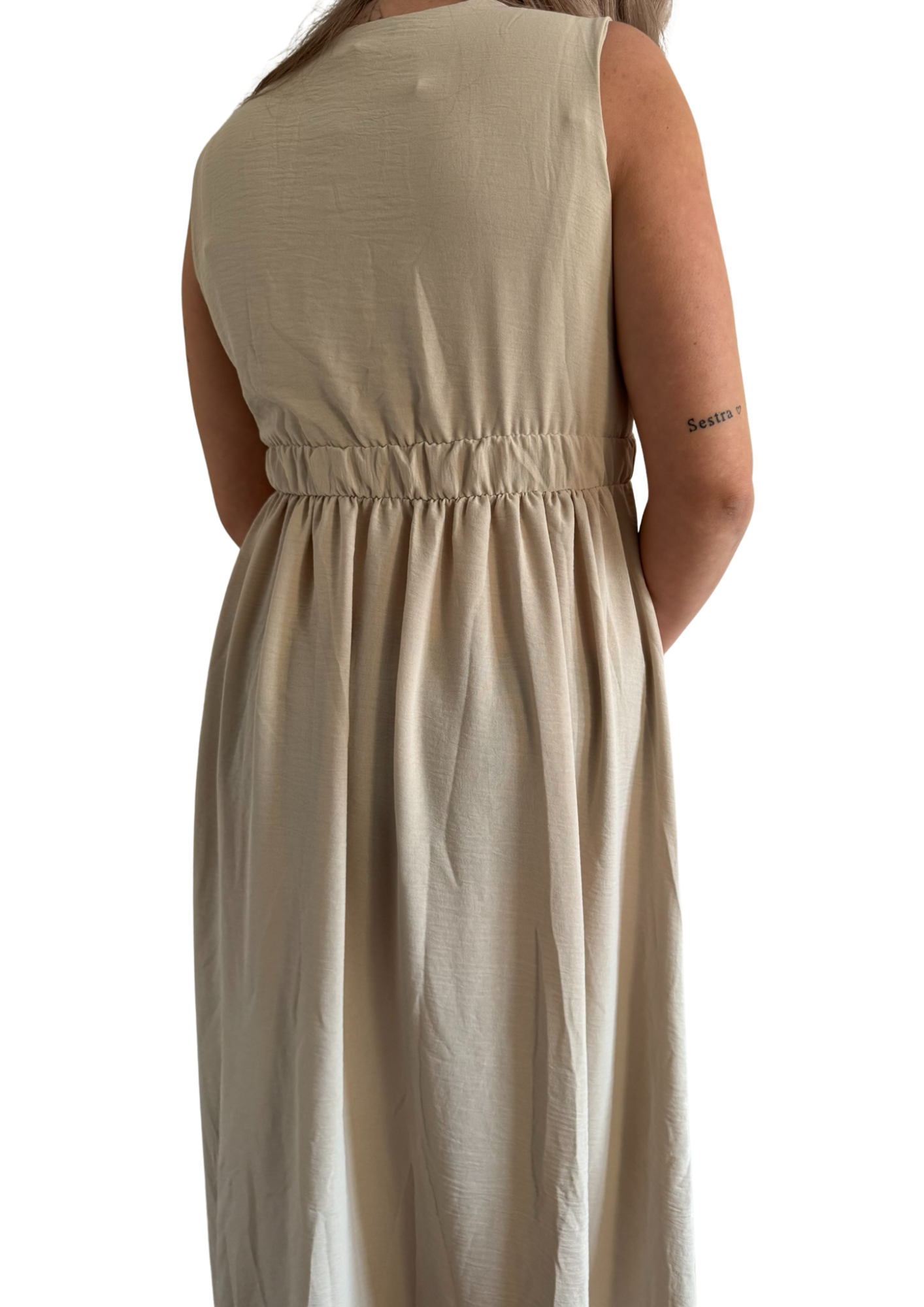 De Seeing Clearly Dress is een mouwloze, flowy zomerjurk die licht en vrij valt en moeiteloos met je meebeweegt.